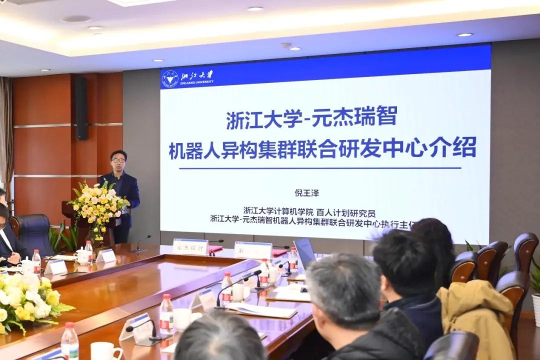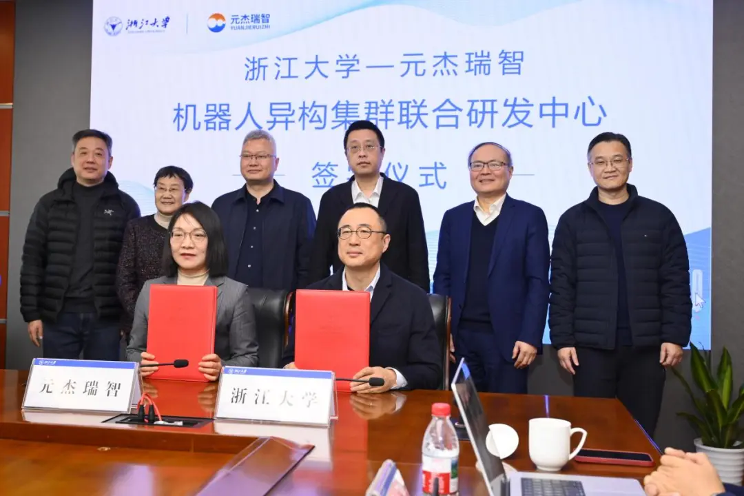 1月22日,浙江大学与杭州元杰瑞智科技有限公司(简称“元杰瑞智”)在浙江大学紫金港校区举行签约揭牌仪式,共同成立“浙江大学-元杰瑞智机器人异构集群联合研发中心”(以下简称“联合研发中心”)。双方将围绕人工智能和机器人异构集群领域开展深度合作,聚焦关键技术攻关,加速成果落地转化。